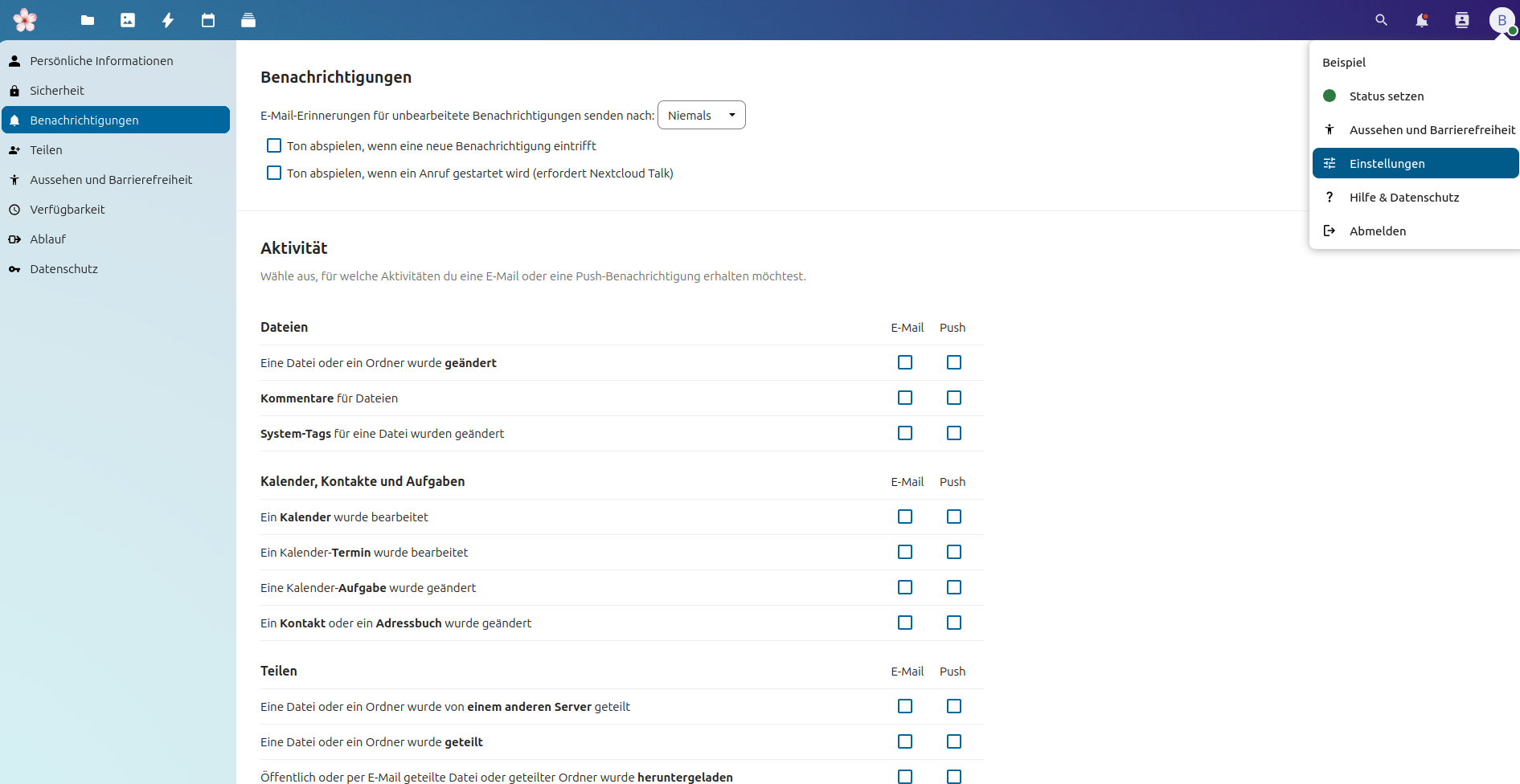 Ihr könnt ebenso feingranular einstellen, wann und ob ihr per Mail bei Änderungen benachrichtigt werden wollt.